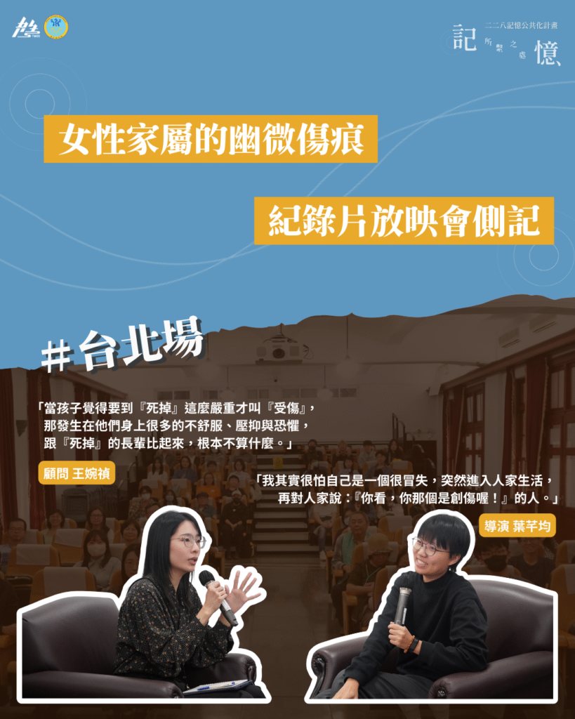 女性家屬的幽微傷痕:紀錄片放映會側記|台北場